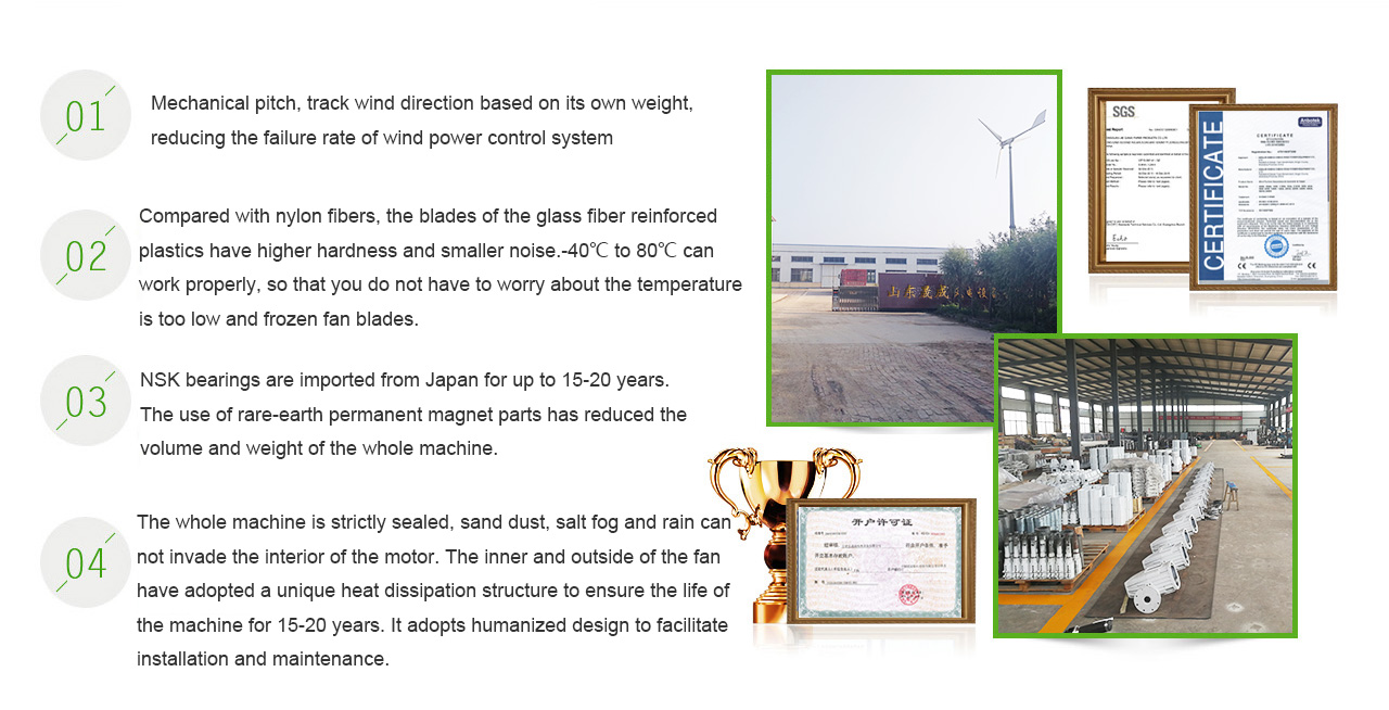 The company is committed to 200W-30KW wind turbines and complete sets of equipment. After years of continuous improvement and improvement of the company's products, the company has been recognized by many countries and regions in the world.