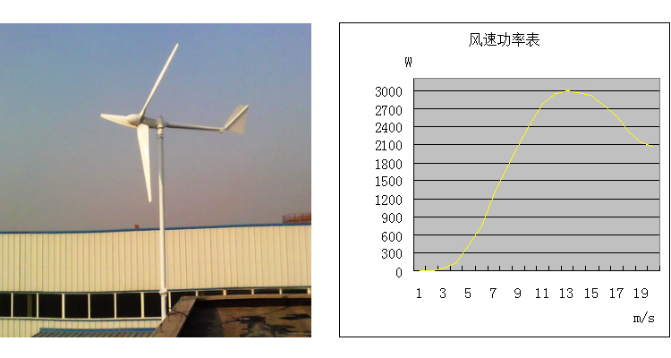 額定功率/最大功率 W | 2000/3000 | 調(diào)速方式 | 偏航+電磁制動 |